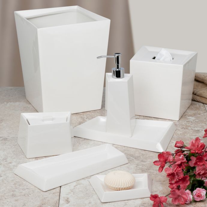 Conveniently sized to fit in even a small bathroom corner, this basket stops tissues or bits of. This bathroom accessory features stylish straight lines and a large design that.. Bedding & Bath/Bathroom Accessories/Bathroom Trash Cans.