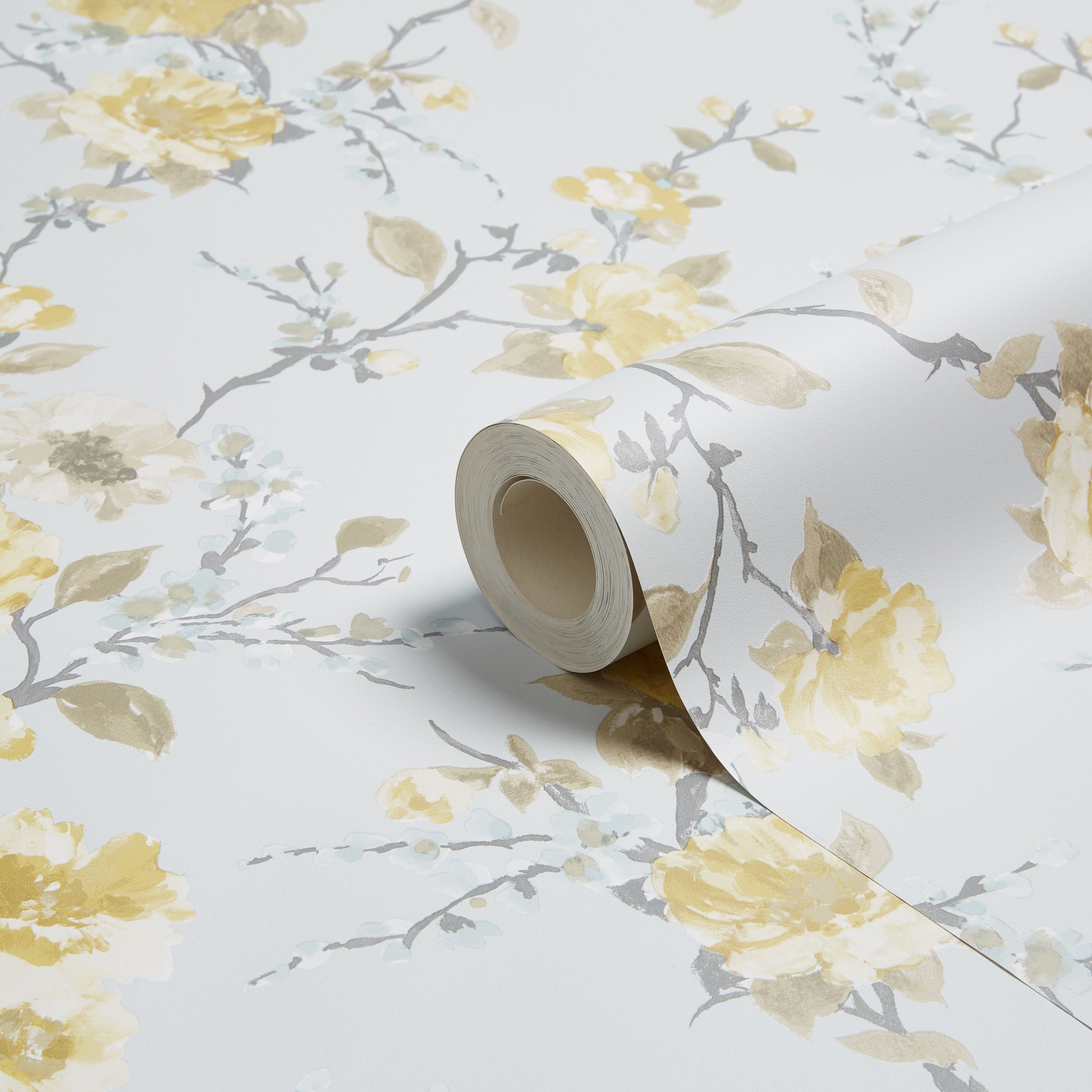 K2 Lucy Duck egg & yellow Floral Wallpaper | Departments | DIY at B&Q